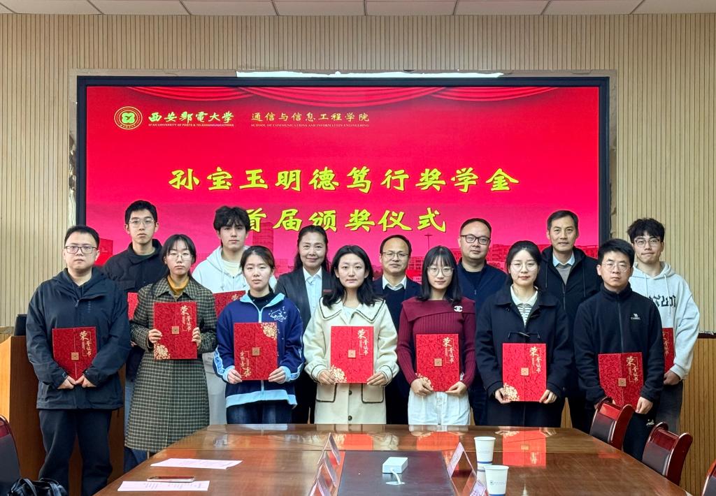 孙宝玉校友为10名获奖学生颁发获奖证书,并分享了自己在西邮的求学经历和成长感悟。他表示,在西邮的求学时光是人生中珍贵的回忆,母校老师们的悉心指导关怀、昔日同学之间的互助共进,自己始终心怀感恩。捐资设立奖学金,正是希望以微薄之力表达对母校和恩师的感激之情,并将这份感恩之心传递给更多的学弟学妹,激励学弟学妹们锤炼品格、勤奋学习、追求卓越,未来回馈社会,传递这份温暖,不负母校期望。