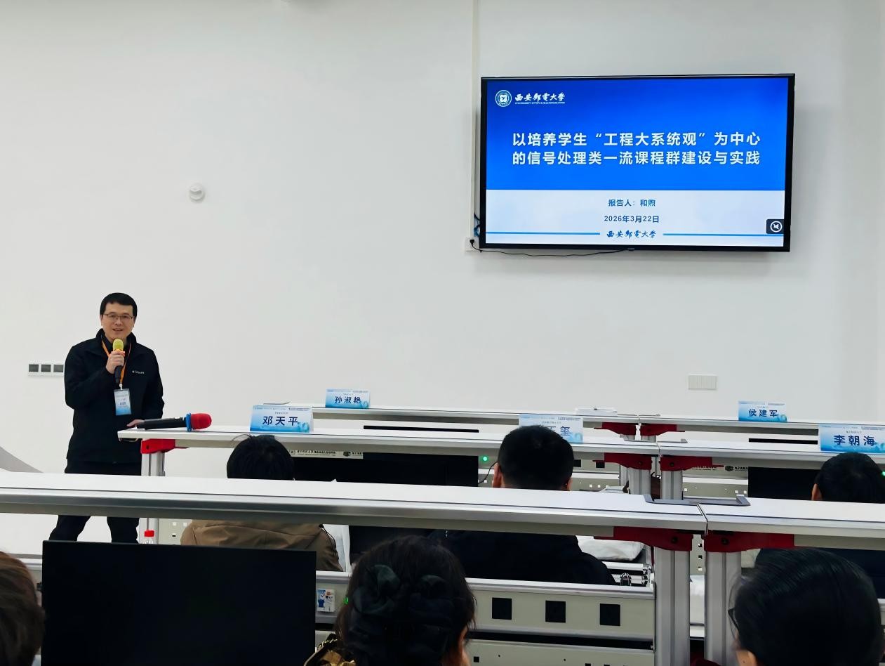 研讨交流环节,和煦作题为《以培养学生“工程大系统观”为中心的信号处理类一流课程群建设与实践》的主旨发言,立足学院近年来教学改革成效,围绕OBE教育理念,阐述了以“工程大系统观”为统领、构建“厚基础、强实践、重创新”三位一体教学体系的实践经验,分享了课程体系与实践教学体系建设中的关键问题及解决路径,为兄弟院校相关专业教学改革提供了有益参考与借鉴。